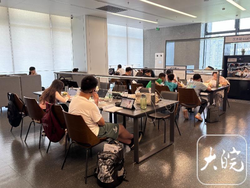 记者通过实地走访了解到,合肥市图书馆同样座无空席,成为市民消暑学习的好去处。据图书馆工作人员介绍,暑期以来图书馆人流量较平日明显增多,读者群体涵盖中小学生、学生家长、职场人士以及一些备考人员。他们或培养阅读习惯、或提升自我、或在图书馆良好氛围中完成工作。